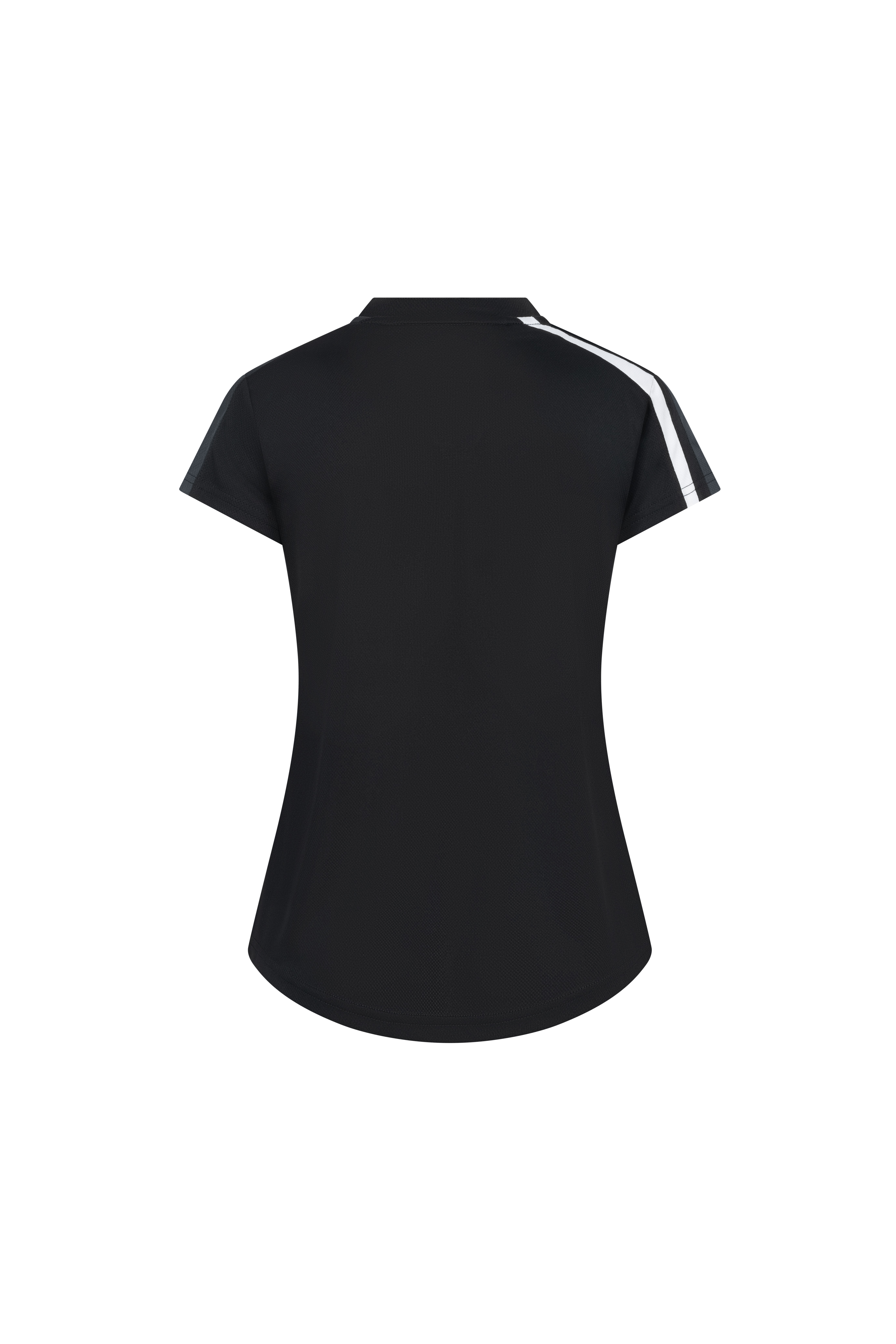 El cuello de elegante diseño, las mangas ligeramente recortadas y la cintura suavemente redondeada añaden un toque femenino al diseño deportivo.